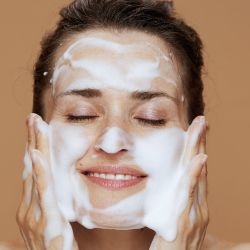 Gebruik de Reinigingsmelk of Cleansing Face Wash om vuil, make-up en overtollig talg te verwijderen.