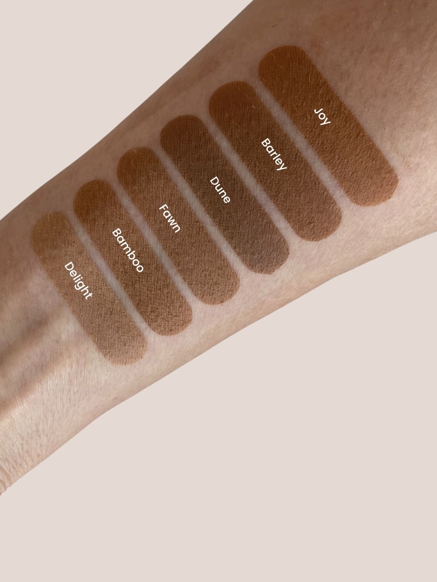 Vores mineralmakeup giver en jævn, strålende teint uden at tilstoppe huden. Let, åndbar og ideel til hverdagsbrug.